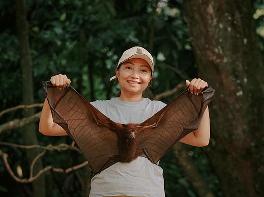 The forest is in the village of Kutuh in the Marga district of Tabanan regency, about a 25-km drive northeast of Bali’s provincial capital of Denpasar. The Pura Dalem Kahyangan Kedaton Temple serves as its centerpiece, with pathways surrounding the mossy temple walls that provide a pleasant walk.