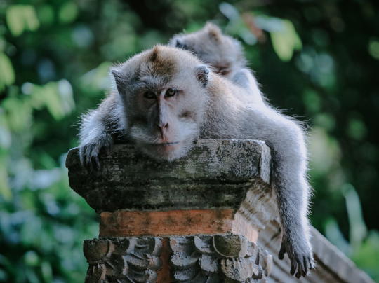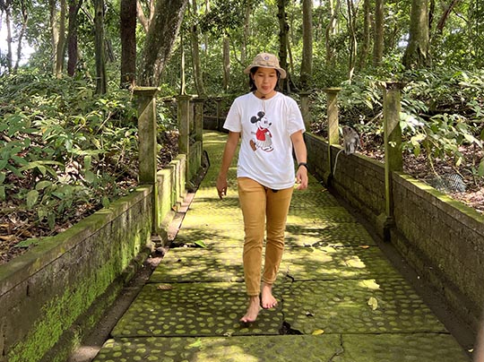 Nutmeg forest and temple which serves as a sanctuary for grey long-tailed macaques.